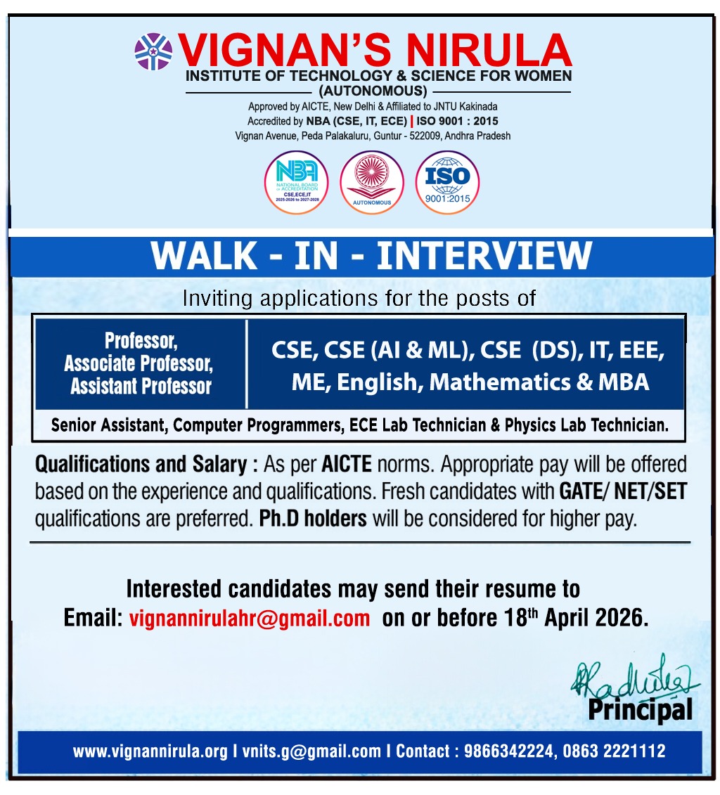 Applying for Faculty Position at Vignan’s Nirula Institute of Technology and Science for Women