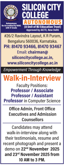 Faculty Recruitment 2025 – Silicon City College, Bengaluru, Karnataka