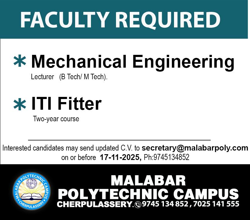 Hiring Institution: Malabar Polytechnic Campus, Cherpulassery, Palakkad, Kerala