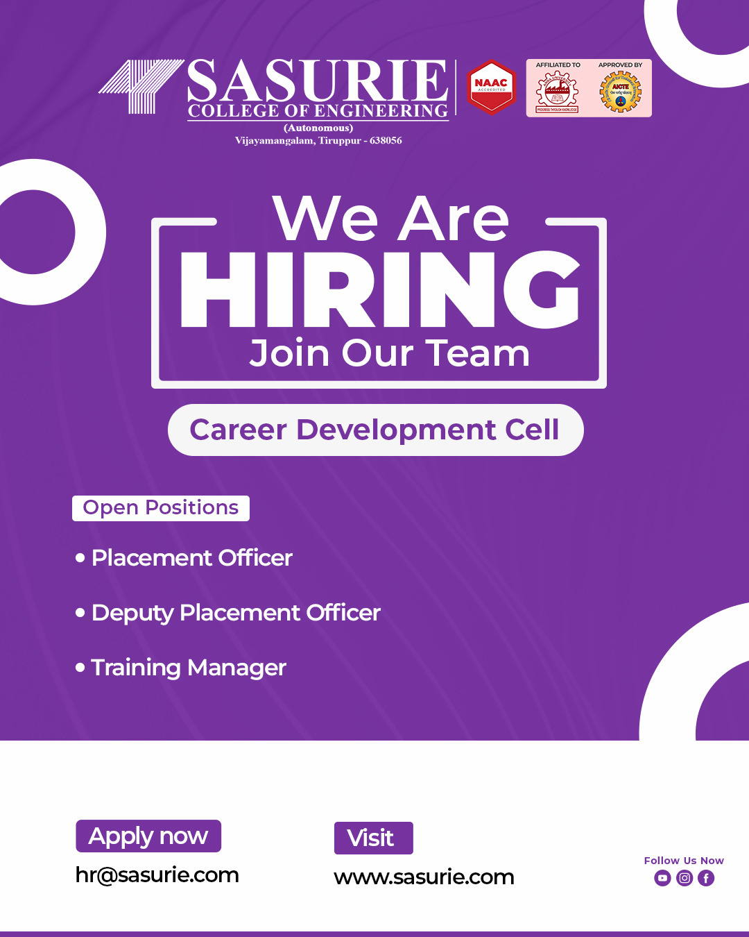 Sasurie College of Engineering, Vijayamangalam – Faculty & Staff Recruitment 2025